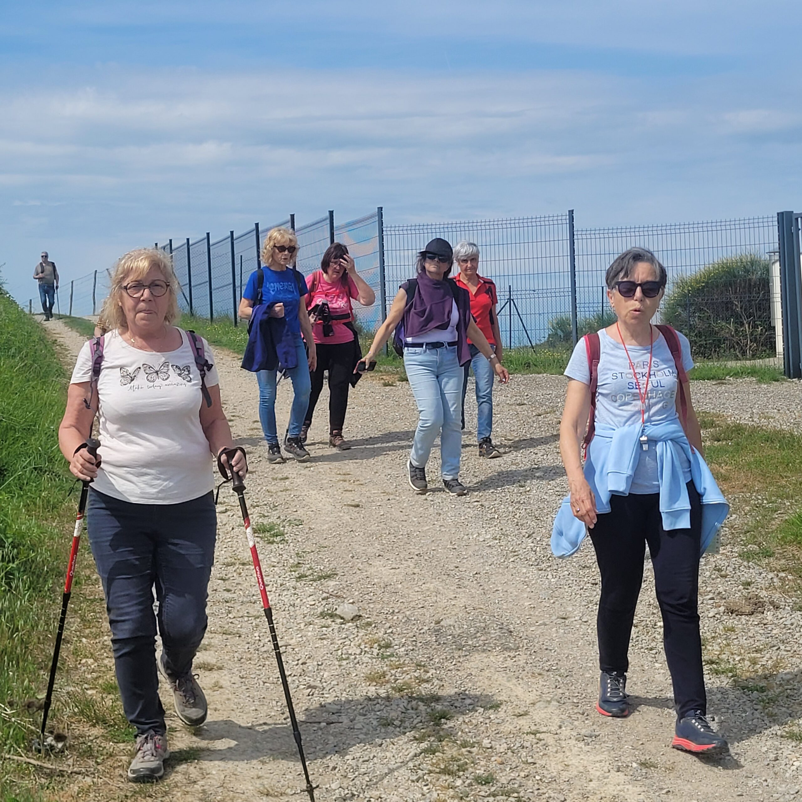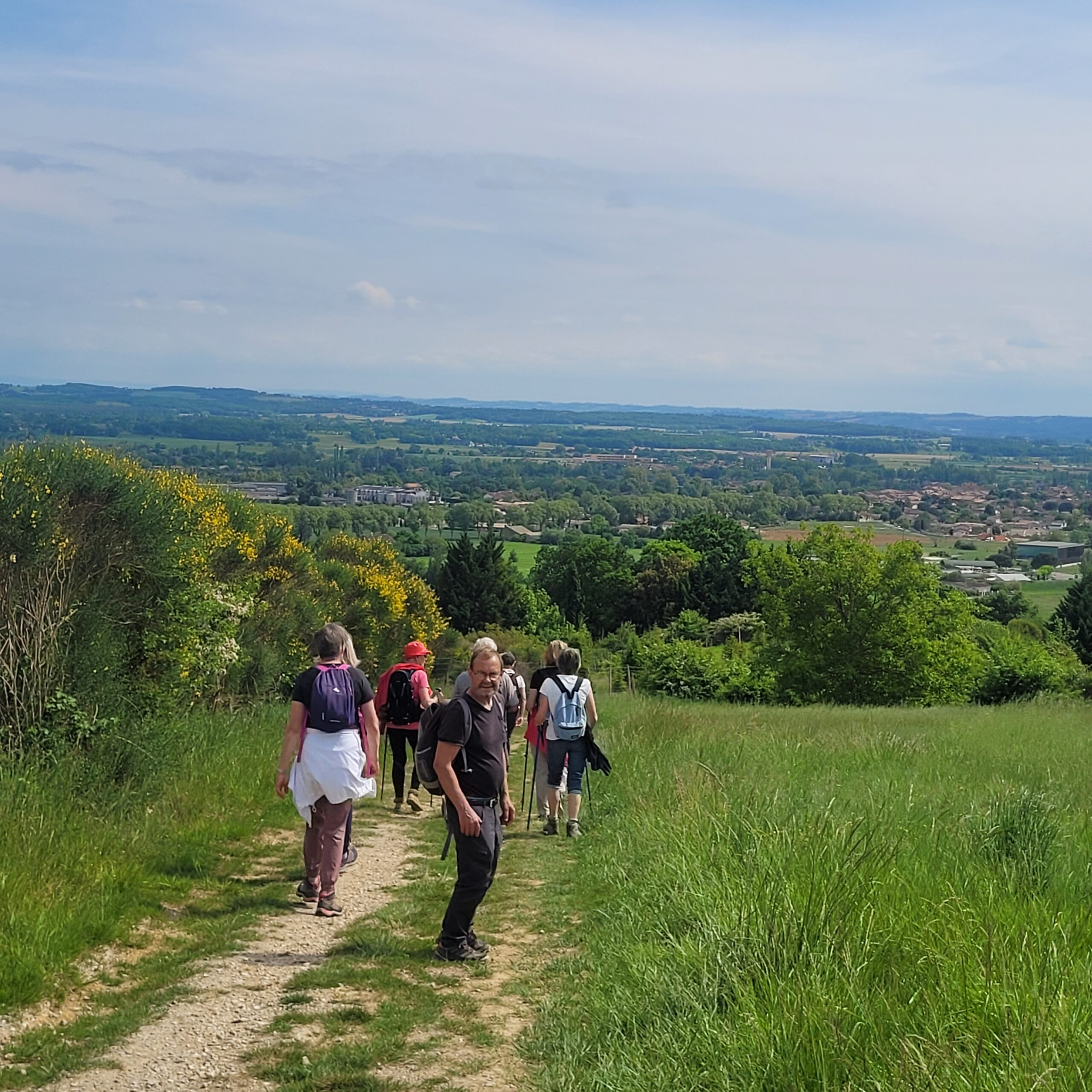 Sous un soleil voilé et chaud le groupe de marcheurs de Graulhet Temps Libre s’est aventuré sur le sentier d’Amédée le vigneron – figure symbolique du vignoble gaillacois – Le sentier quitte la cave des vignerons de Rabastens pour s’aventurer sur les coteaux au milieu des vignes. Il permet d’admirer un pigeonnier typique du Gaillacois, le puits de la Trémège et grimpe en haut des collines, offrant une magnifique vue sur les coteaux de Salvagnac. Il retourne ensuite vers Rabastens