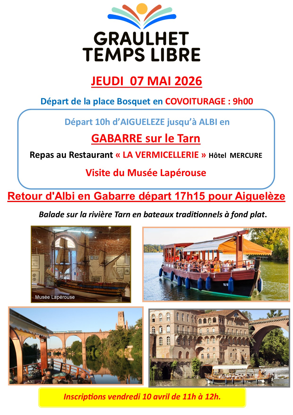 Flyer : Jeudi 07 mai – « Gabarre sur le Tarn » ( covoiturage)