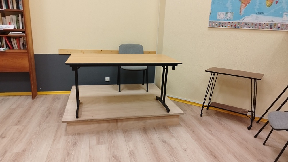 D’abord, une petite estrade toute neuve a été installée : parfaite pour les animations, les conférences, les démonstrations ou les prises de parole. Fonctionnelle, stable et élégante, elle deviendra sans aucun doute un nouvel atout pour nos événements.