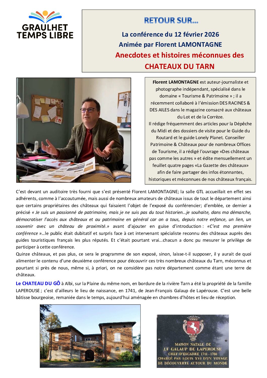 Retour sur : Anecdotes et histoires méconnues des Châteaux du Tarn – Conférence du 12 février 2026