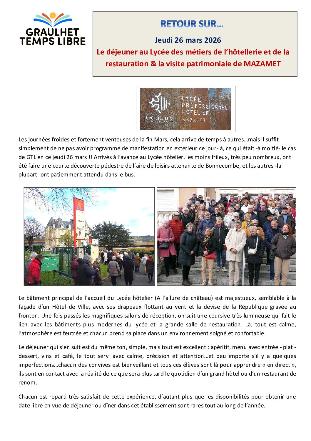Retour sur…Mazamet – Le déjeuner au Lycée des métiers de l’Hôtellerie et Visite patrimoniale – Jeudi 26 mars